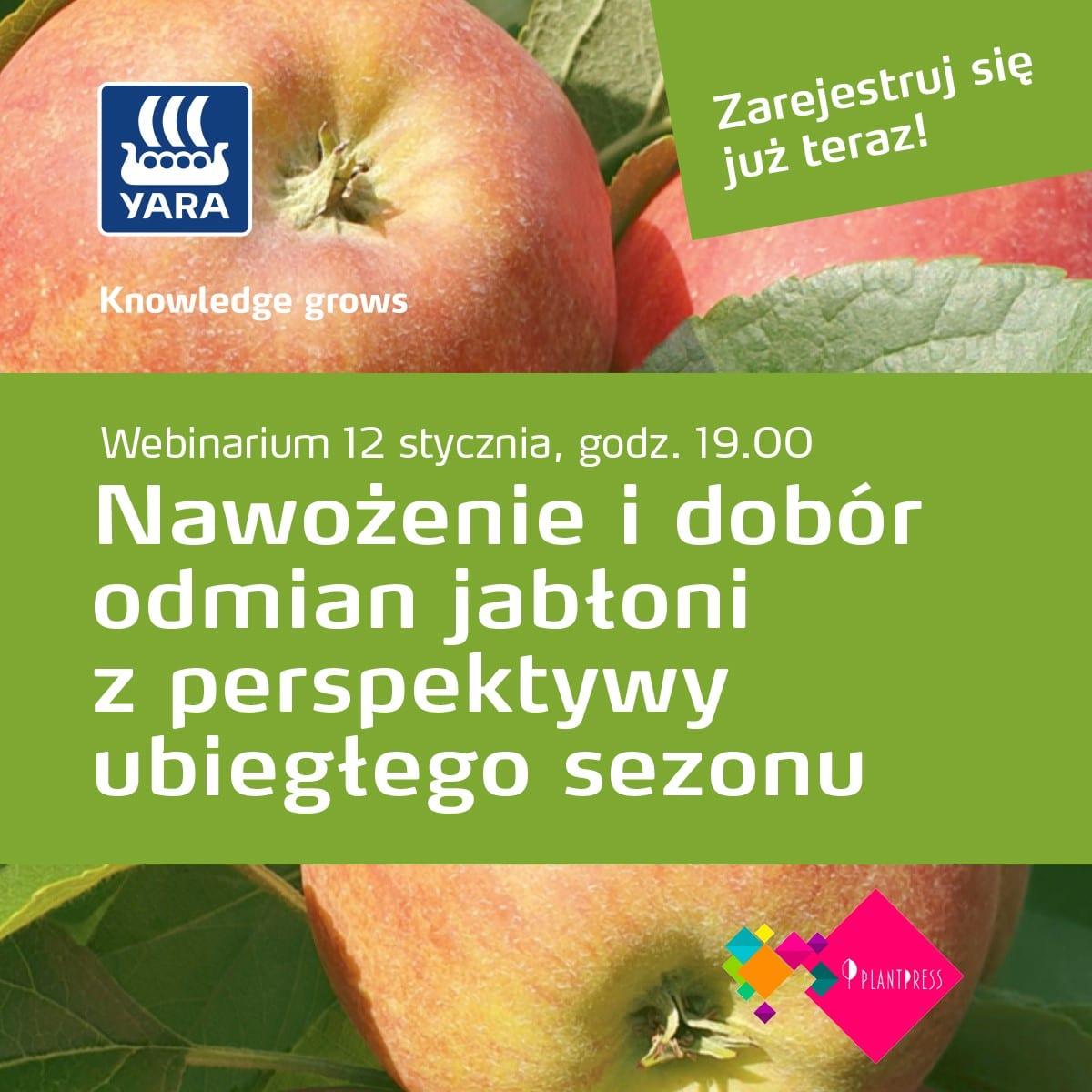 do uczestnictwa w webinarium pt.: „Nawożenie i dobór odmian jabłoni z perspektywy ubiegłego sezonu”.