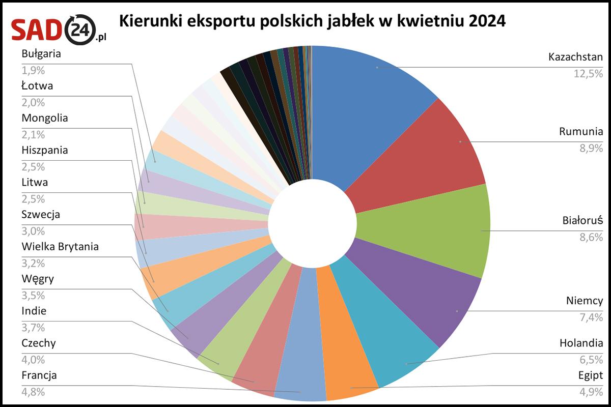 <strong>Eksport jabłek deserowych w kwietniu. Opracowanie własne na podstawie danych GUS</strong>