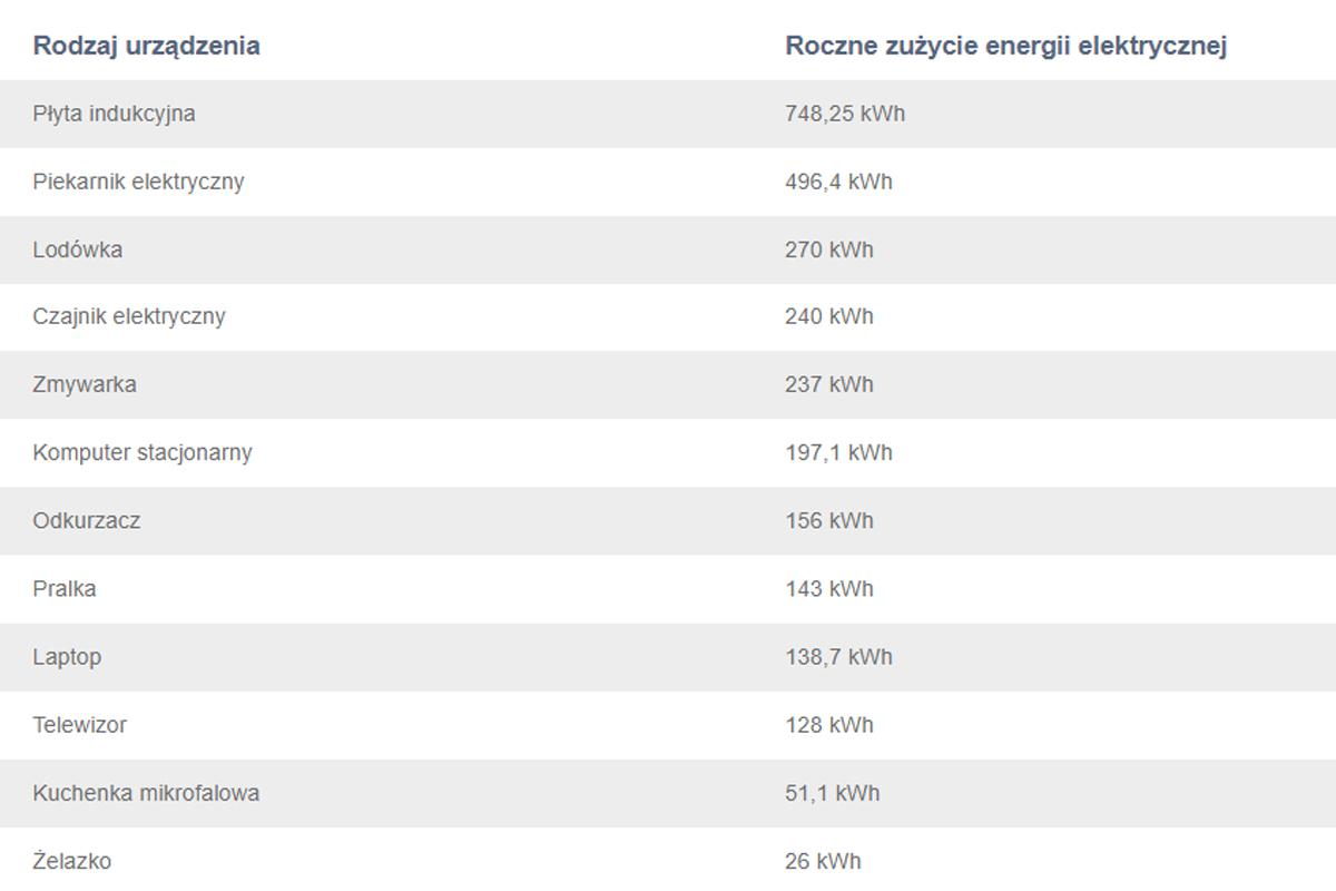 Ile to właściwie jest 3000 kWh? Biorąc pod uwagę urządzenia chłodnicze w gospodarstwach sadowniczych czy nowoczesne maszyny w innych specjalizacjach jest to liczba, której realnie nie da się nie przekroczyć nawet w małym gospodarstwie rolnym. Przypomnijmy, że po przekroczeniu progów z rozporządzenia Rządu, odbiorca zapłaci rynkowe ceny za prąd. Niżej przedstawiamy wyliczenia średniego rocznego zużycia energii przez PGNiG. Jak widać tylko podstawowe urządzenia AGD zużywają rocznie niemal 3000 kWh rocznie...