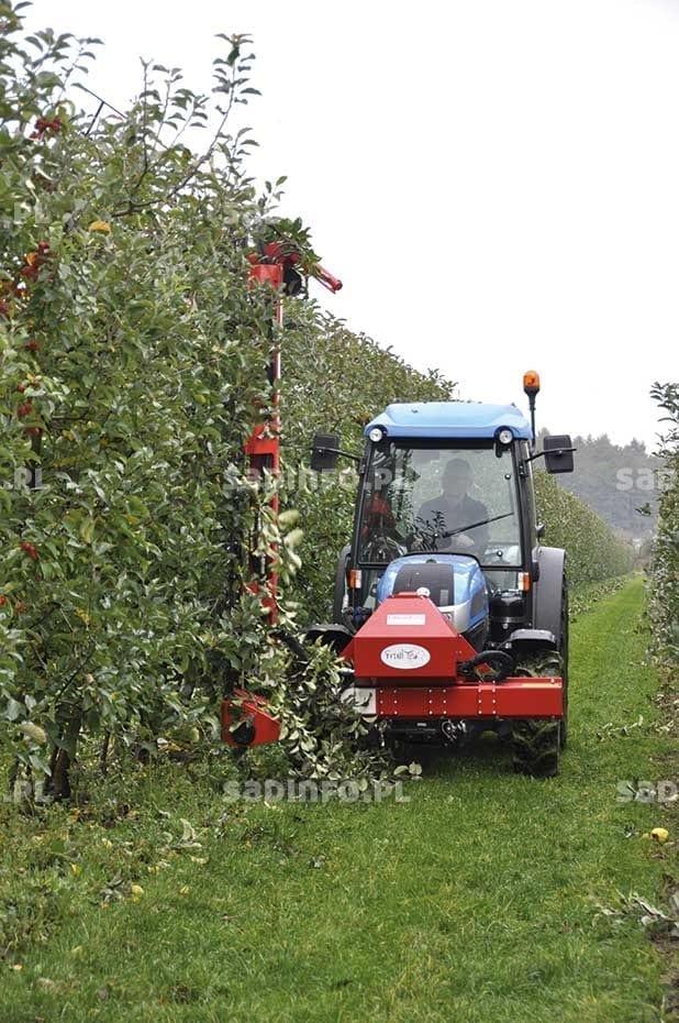 Mechaniczne cięcie także jest przeprowadzane po zbiorze jabłek, ale gdy na drzewach są liście (fot. 2). Gdy są one zielone, zabiegowi temu poddawane są triploidalne odmiany jabłoni (‘Jonagold’ i sporty, ‘Mutsu’, ‘Alwa’, ‘Red Boskoop’ i sporty) oraz inne zbyt silnie rosnące (np. ‘Red Boskoop’), gdy są brązowe – odmiany diploidalne (‘Gala’, ‘Golden Delicious’, ‘Szampion’, grupa ‘Red Delicious’) i takie, w których wypadku cięcie ma w niewielkim stopniu wpłynąć na siłę wzrostu. Po opadnięciu wszystkich liści, mechanicznie tnie się drzewa w pełni owocowania z rozrośniętymi koronami. Głównym powodem tak wczesnego rozpoczynania cięcia jest chęć obniżenia kosztów produkcji oraz dostępność siły roboczej w tym terminie lub zapewnienie pracownikom pracy. Gdy zima jest łagodna jabłonie można ciąć przez cały okres jej trwania.