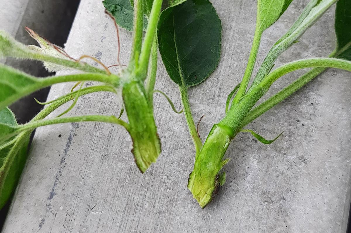 Zdaniem sadownika (który wykonał zdjęcia) jest to efekt przemrożenia w fazie zielonego pąka. Podczas ostatnich przymrozków większość producentów była zdania, że w tej fazie nie będziemy mieli do czynienia z żadnymi uszkodzeniami. Opinię te może potwierdzać dalsza analiza. Mianowicie w lustrowanym sadzie nie zaobserwowano przemrożeń podstawy pąka, co potwierdza tezę o przemrożeniu w fazie zielonego pąka.