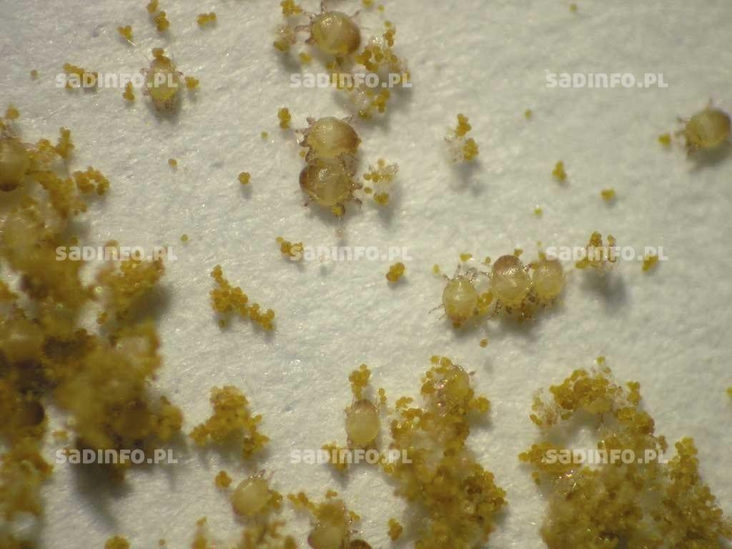 Jednym z zabiegów ograniczających rozwój populacji pasożytów jest palenie pozostałości kokonów po wygryzieniu się pszczół, po około 3 tygodniach od ich wystawienia do sadu. Zniszczeniu wówczas ulegają pasożyty (np. Monodontomerus), które znajdują się w kokonach, gdyż wychodzą z nich dopiero na przełomie maja i czerwca. Drugim zabiegiem redukującym pasożyty w kolonii jest wydobywanie kokonów po sezonie i przenoszenie do zimowli tylko zdrowych, dobrze rozwiniętych oprzędów. Podczas wyjmowania kokonów z gniazd należy zwrócić szczególną uwagę na komórki spasożytowane przez roztocza – Chaetodactylus (fot. 5). Są to komórki w całości wypełnione brunatną lub brunatno–żółtą zawartością. Wysypując zawartość takiej komórki na biały papier po przyjrzeniu się mu można zauważyć, że materiał porusza się, bo znajdują się w nim liczne roztocza. Można je obejrzeć przy użyciu szkła powiększającego (fot. 6). Wygarniając kokony z kanałów gniazdowych należy uważać, aby nie przenieść zawartości spasożytowanych komórek na zdrowe kokony. Resztki trzcinowych gniazd najlepiej jest spalić. W przypadkach wykorzystywania gniazd wielokrotnego użytku trzeba pamiętać o ich dezynfekcji. Jeżeli podczas analizy gniazd stwierdzone będą kokony z niewielkimi otworkami, to również należy je spalić, ponieważ zawierają pasożyty.