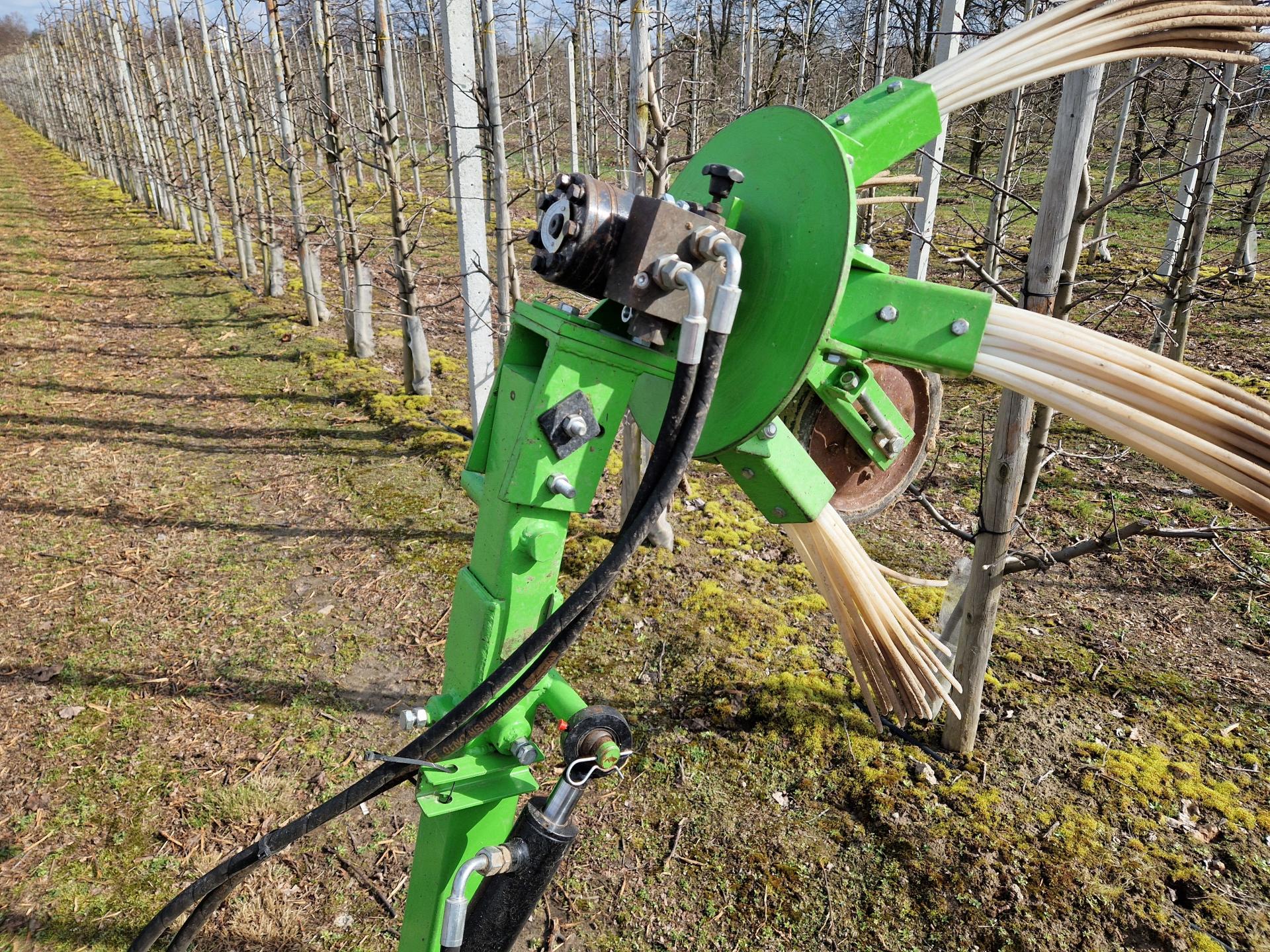 Pręty z tworzywa mają więcej zalet i wszystko wskazuje na to, że obecnie wygrywają w ogólnym rozrachunku. Sadownicy podkreślają, że przede wszystkim są dokładniejsze. W sadach na podkładce M9 pod drzewami zostaje maksymalnie 5% gałęzi, a nierzadko mniej. Dobrze ustawiona głowica na kole podporowym tylko minimalnie narusza strukturę gleby. Rozwiązanie poradzi sobie także z większą liczbą gałęzi po cięciu. Jedną ze wskazówek do komfortowej pracy jest wymiatanie wczesnym rankiem, gdy gleba bywa zmarznięta. Tak było w ubiegłym tygodniu.