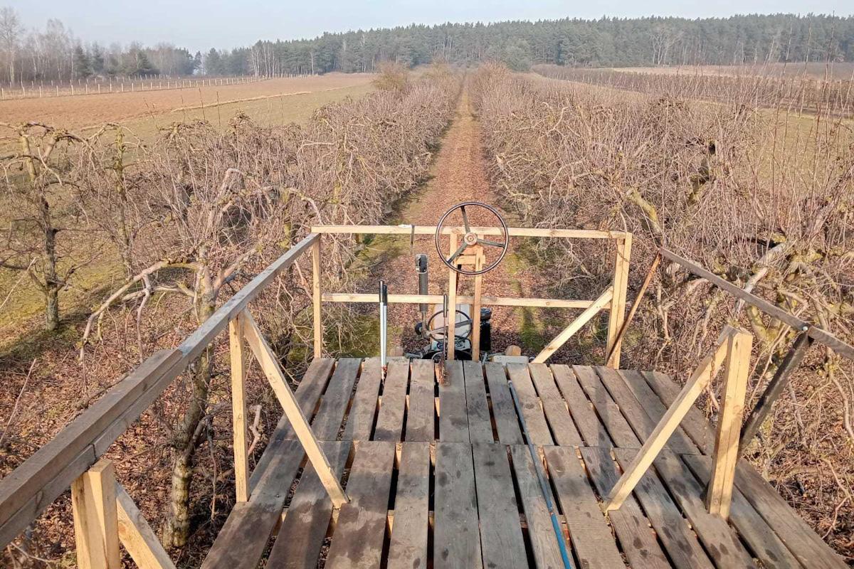 Platforma została zbudowana tak, aby umożliwić komfortową pracę przy drzewach na postoju. Długość platformy pozwala na jednorazowe cięcie gałęzi z czterech drzew jabłoni z każdej strony rzędu.