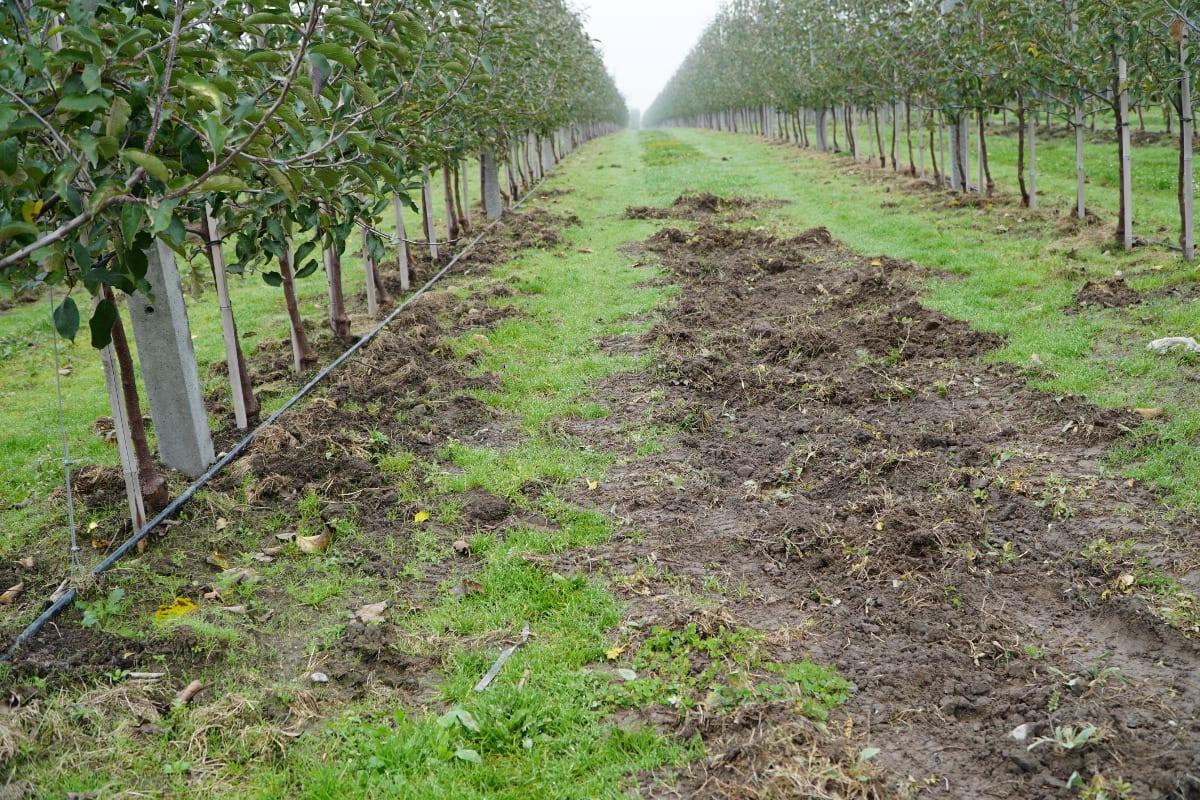 Jak widać na załączonych zdjęciach, niektórzy mogliby pomyśleć, że sadownik wykonywał mechaniczną uprawę pod koronami drzew. Ziemię wzruszyły jednak dziki. Problemem jednak jest zniszczona murawa w międzyrzędziach, która utrudnia wykonywanie zabiegów. W celu poprawy stanu międzyrzędzi sadownicy używają borny aktywnej.