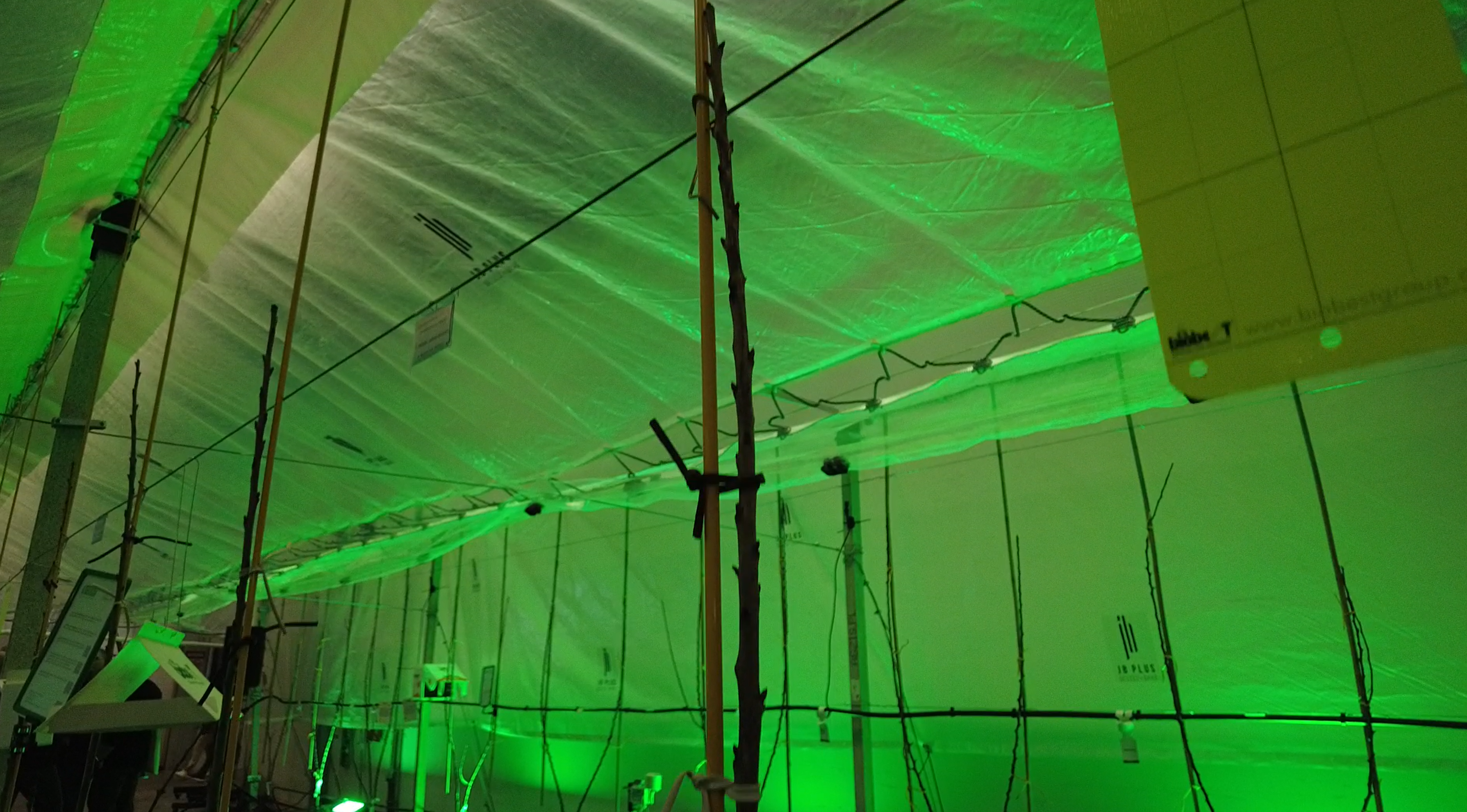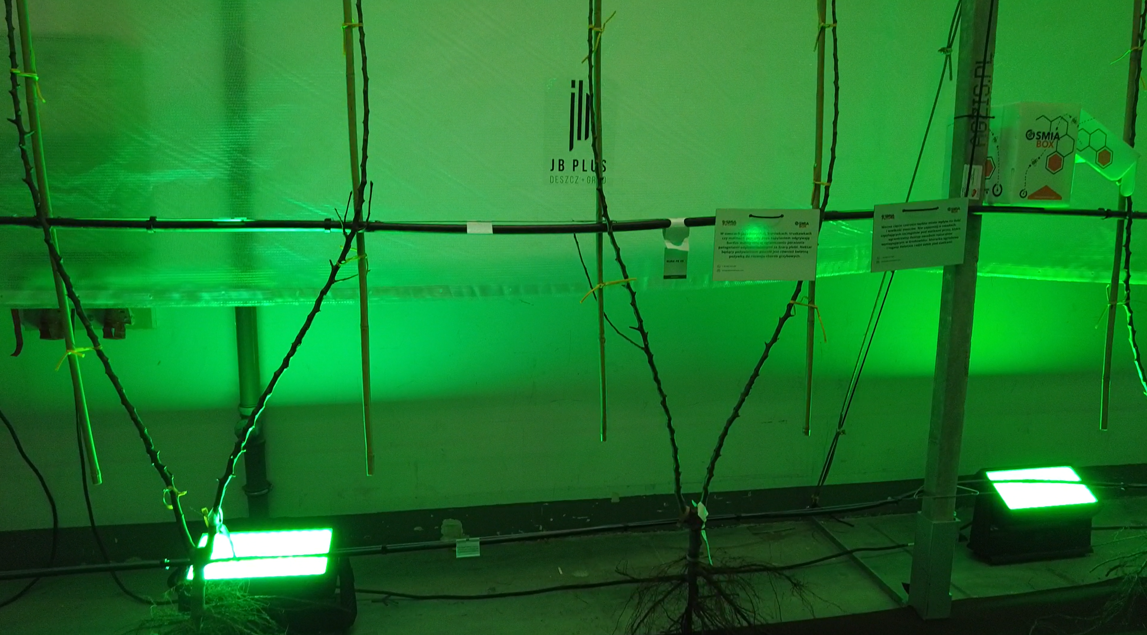 Na poletku czereśniowym pokazano szereg rozwiązań do monitoringu szkodników firmy Biobest. Były to: Trap‑eye – kamera do rejestracji szkodników na pułapkach lepowych, Delta‑trap – pułapka do monitorowania motyli, Bug‑Scan – kartki lepowe do monitoringu owadów UL Standard. Żółta tablica lepowa wyposażona w kamerę pozwala na bieżące śledzenie odłowów, na przykład nasionnicy trześniówki. System wykonuje zdjęcia tablicy, zlicza owady i wyświetla ich liczbę w czasie rzeczywistym, co pomaga w określaniu progów zagrożenia. Obok zaprezentowano klasyczną tablicę lepów oraz „domek” z wymiennymi podłogami lepowymi, przystosowany do umieszczania różnych pułapek i wkładów feromonowych.