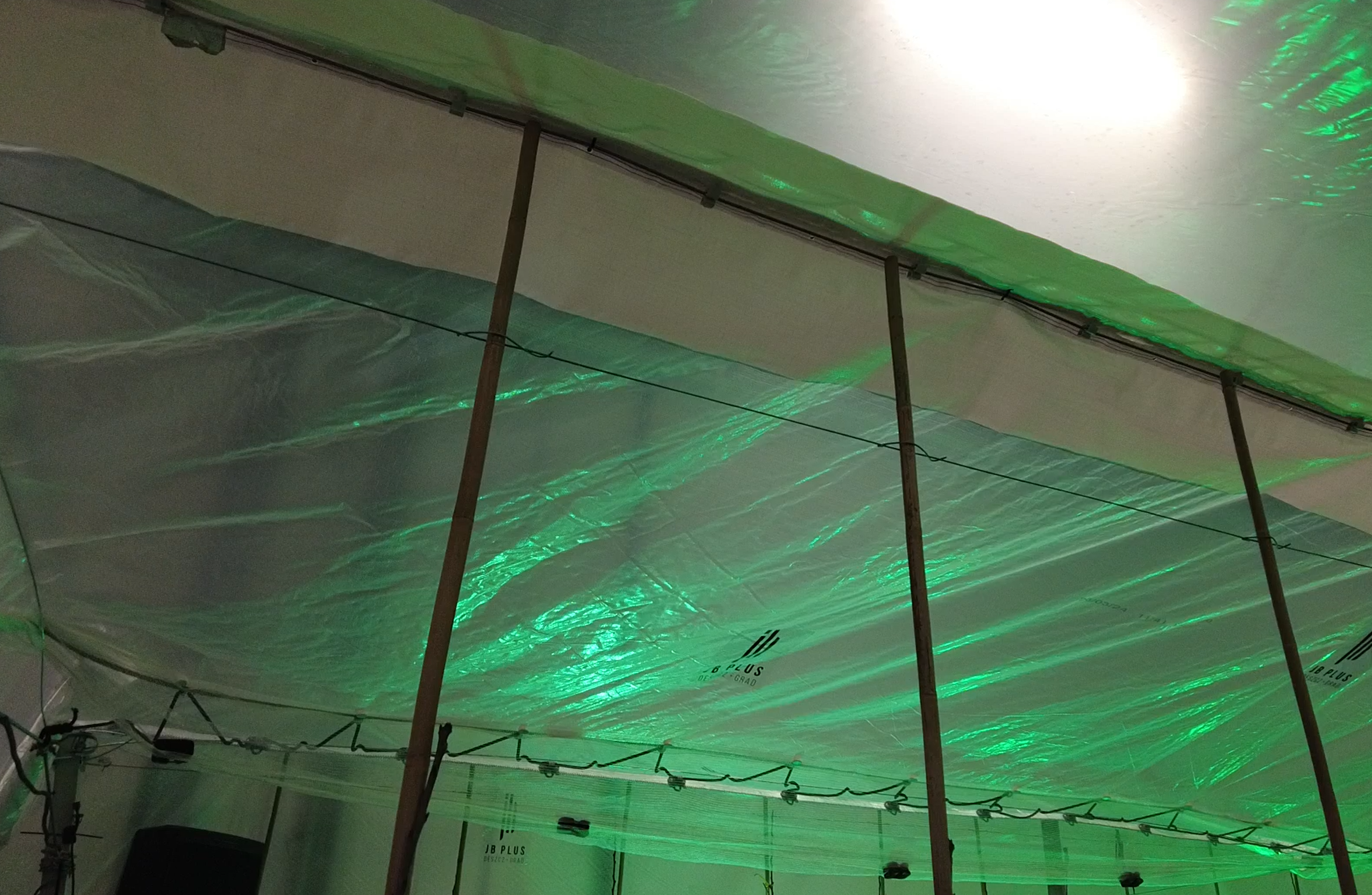 Whailex od JB Plus można montować zarówno na nowo stawianym rusztowaniu, jak i na istniejących konstrukcjach w kilkuletnich, owocujących już sadach. System dobrze sprawdza się przy krótkich i długich rzędach, a także pozwala w razie potrzeby chronić pojedyncze rzędy – tam, gdzie nie chcemy od razu inwestować w pełne zadaszenie całej kwatery. Jak podkreślił Marcin Piesiewicz, przy tego typu systemie trzeba pamiętać o ograniczeniu wysokości słupów – ze względu na brak górnych ściągów rekomendowana wysokość to maksymalnie około 3,5–3,7 m. W zamian otrzymujemy lekką, elastyczną osłonę, która przy poprawnym zakotwieniu i właściwym doborze przekrojów słupów dobrze chroni sad nie tylko przed gradem, ale również przed oparzeniami słonecznymi, ptakami czy zwierzyną.