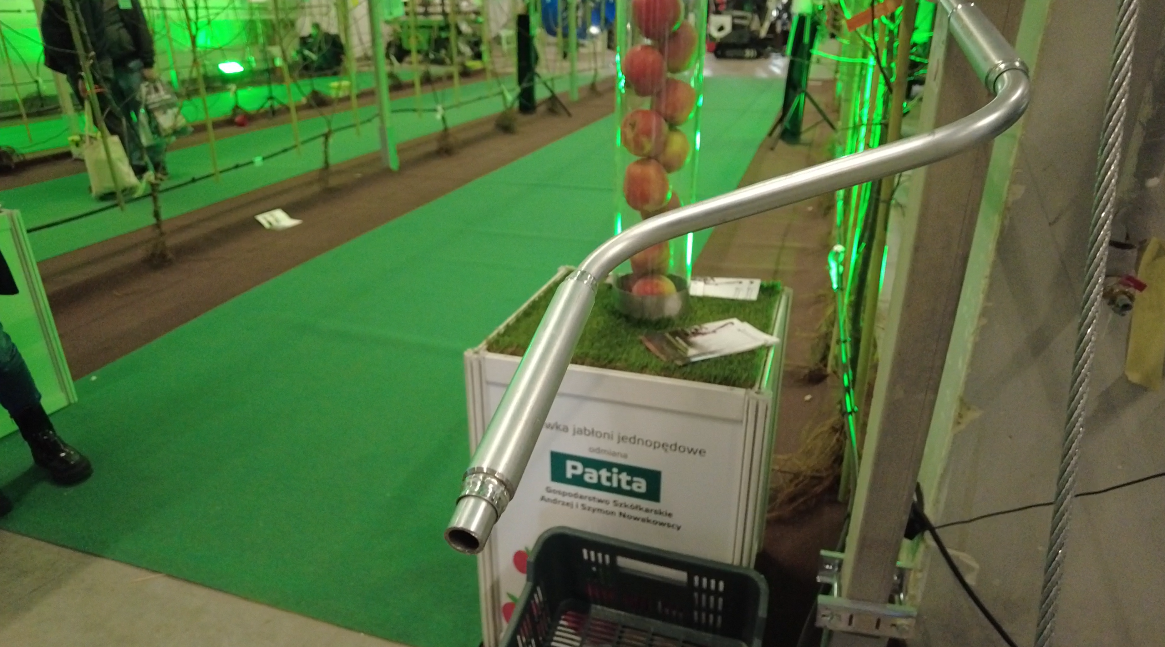 Pierwszy rząd jabłoni obsadzono dwiema odmianami polskiej hodowli, wyhodowanymi w AJAPPLE w Żdżarach k. Nowego Miasta. Pierwsza z nich to Patitta – będąca siewką odmiany Honeycrisp × siewka Pinovy. Patitta jest odmianą o pomarańczowo-czerwonej skórce, z delikatnym prążkowaniem Charakteryzuje ją nieco późniejszy termin zbioru. W komorach chłodniczych z kontrolowaną atmosferą Patitta przechowuje się bez problemu nawet przez dziewięć miesięcy. Po wyjęciu z komory długo zachowuje wysoką jakość – nie mięknie, pozostaje krucha i soczysta. „Bardzo dobra, ciekawa odmiana” – tak ocenia ją Marcin Piesiewicz.