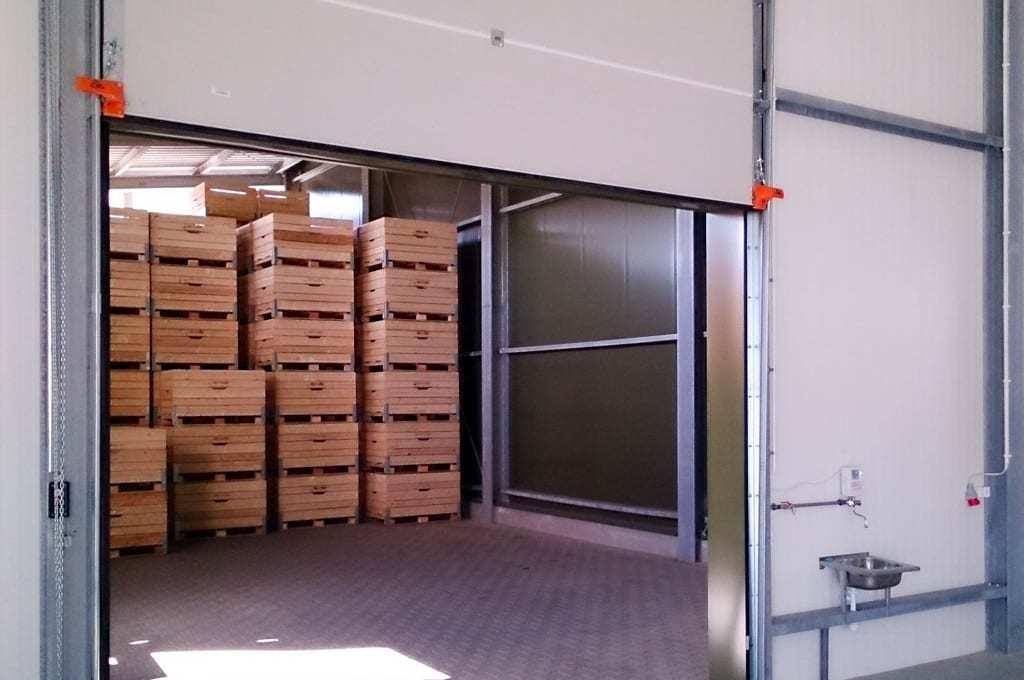 Jeżeli obieg powietrza w komorze jest niedostateczny, można na chłodnice dodatkowo założyć kierownice powietrza. Takie rozwiązanie może być szczególnie potrzebne, jeśli w komorze znajdują się naturalne przeszkody utrudniające w niej przepływ powietrza (np. jeśli jest to adaptowany budynek). Przed szczelnym zamknięciem komór należy również pamiętać o umieszczeniu na wprost okienka inspekcyjnego skrzynki z jabłkami kontrolnymi.