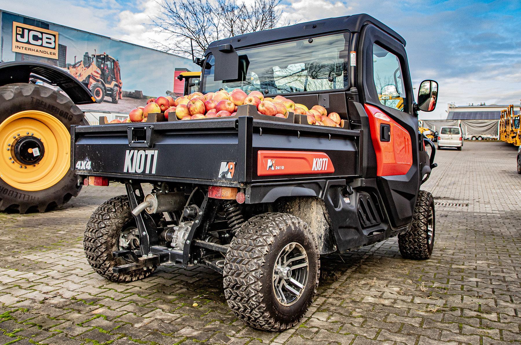 Dzięki napędowi 4 × 4, blokadzie mechanizmu różnicowego i dwuwachaczowemu zawieszeniu kół z oponami terenowymi, Kioti K9 świetnie sprawdzi się w jeździe po polu, gdy trzeba dojechać do pracującego kombajnu czy ciągnika z siewnikiem.