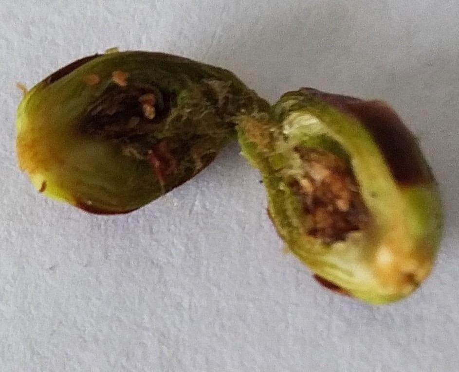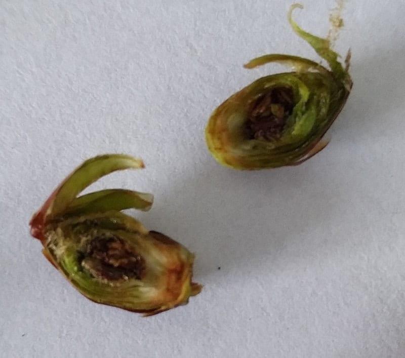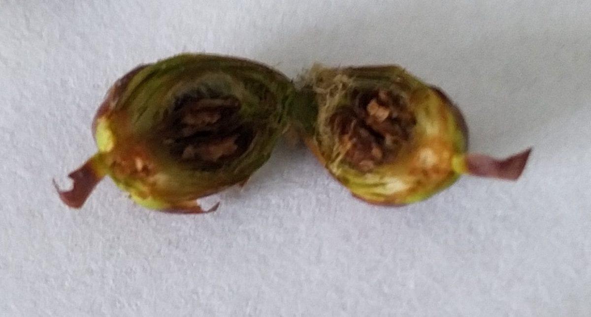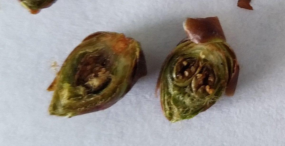 Na odmianie Techlovan 21 na 50 pąków jest przemarzniętych – daje to 42% strat.