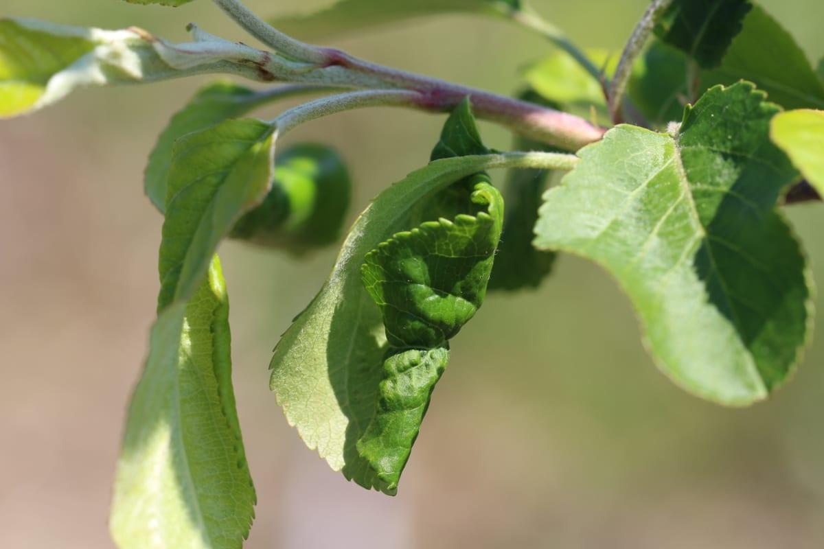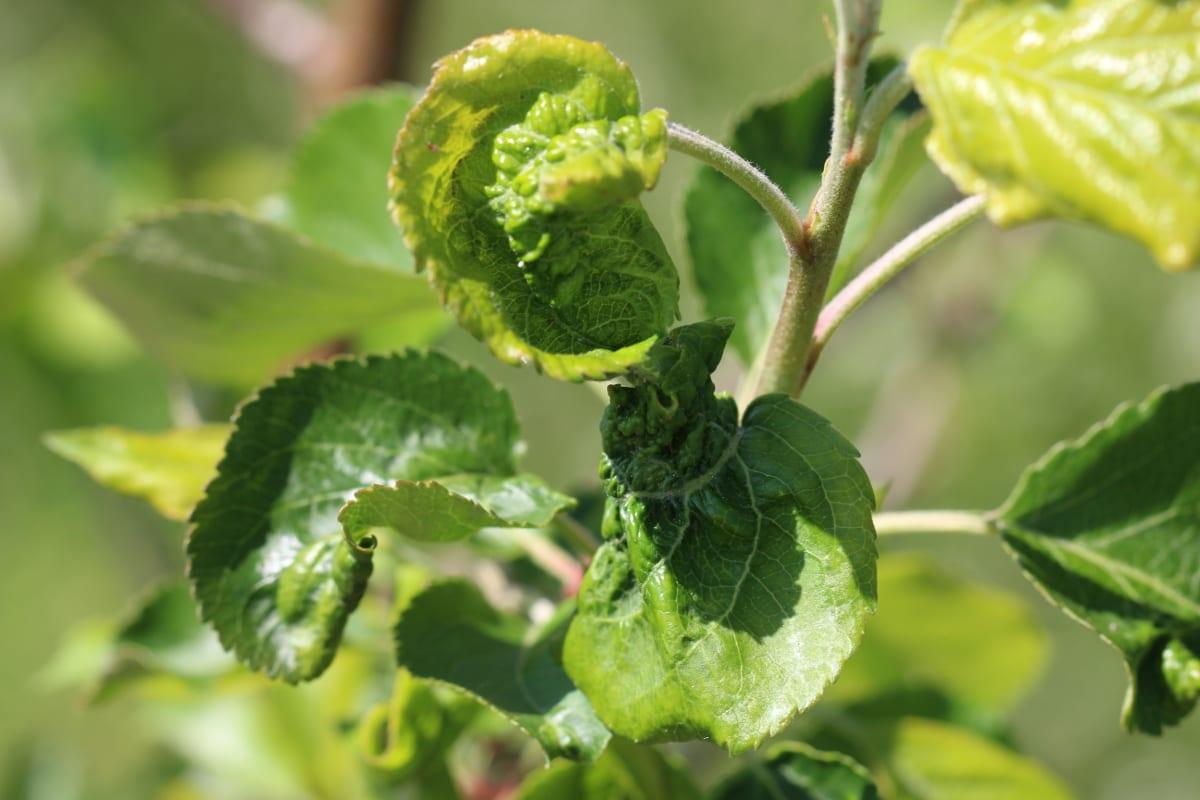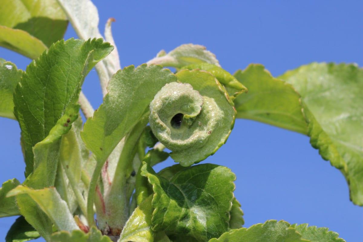 To kolejny z rzędu rok, kiedy liczebność mszyc w sadach jabłoniowych jest zatrważająca. Ten stan obserwuje się od bardzo wczesnej wiosny, a obecnie populacje są tak duże, że tylko insektycydami układowymi można próbować z nimi walczyć, gdyż ich kolonie ukryte są szczelnie w zwiniętych, zdeformowanych organach – liściach i wierzchołkach pędów (fot. 1, 2, 3, 4). W takich sytuacjach insektycydami powierzchniowymi, kontaktowymi niewiele zdziałamy.
